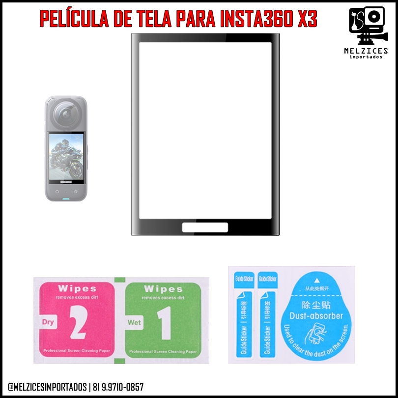 Proteja o LCD da sua câmera Insta360 X3 com esta película feita em VIDRO TEMPERADO.